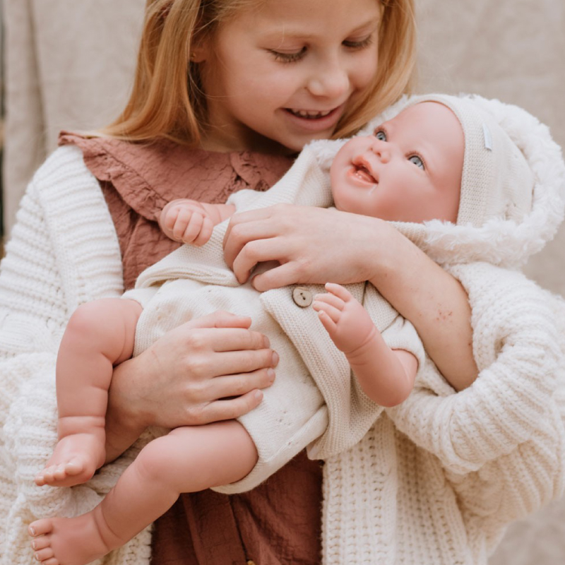 Papusa Reborn Arias Diego este un bebelus cu greutate si aspect realiste, masoara 45 cm si a fost elaborat manual cu foarte multa grija pentru fiecare detaliu. In plus, emana o aroma placuta de vanilie care te va face sa-l iubesti si mai mult. Corpul sau este moale iar membrele catifelate sunt din vinil, oferind o atingere delicata. Acest material de inalta calitate permite artizanilor sa creeze detalii caracteristice nou-nascutilor, precum inrosirea pielii, venele sau luciul unghiilor. Hainutele si marsupiul au fost realizate cu tesaturi de inalta calitate. Papusa Reborn Arias Diego este insotita de certificat de autenticitate.
