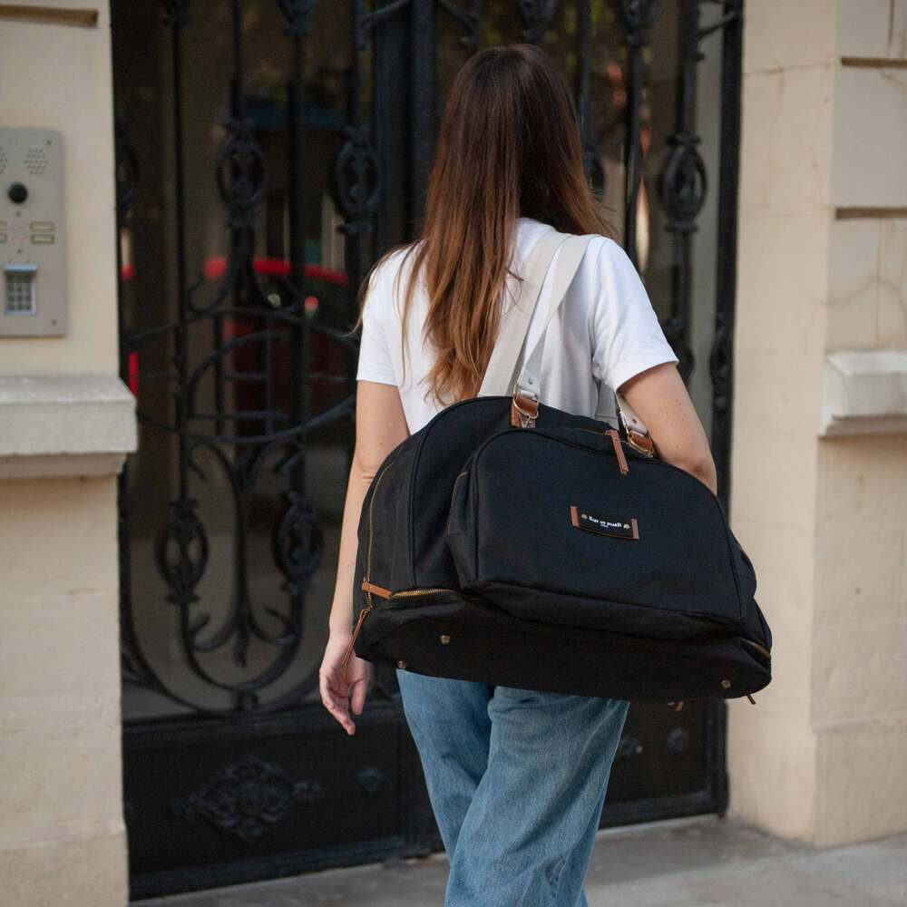 Aspectul dreptunghiular cu manere lungi transforma Geanta de infasat Baby On Board Juliette Black intr-o poseta chic ce se potriveste atat tinutelor casual, cat si celor business.Interior compartimentat