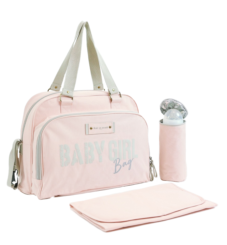 Pentru iubitorii de pastel, Geanta de infasat Baby On Board Simply My Baby Rose combina mesajul dragalas cu functionalitatea premium Baby On Board.