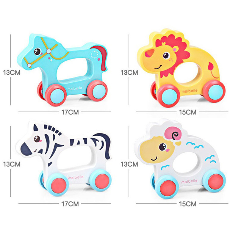 Seria de jucarii cu rotile este destinata micilor exploratori cu varsta mai mare de 18 luni. Animalutele colorate pot fi trase, impinse de copil, stimuland dezvoltarea motorie si fizica a acestuia, simtul echilibrului si coordonarea.