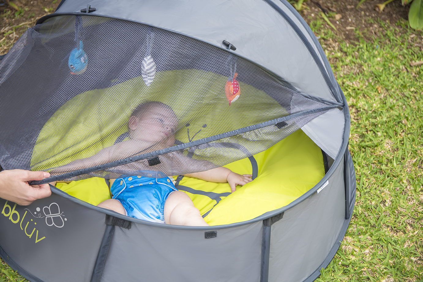 Cort 2 in 1 de calatorie si joaca bblüv Nidö este partenerul perfect pentru vacante, picnicuri si joaca sigura, oriunde ai fi.