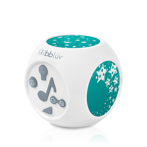 Lampa de veghe muzicala cu proiector bblüv Kübe ofera o experienta multisenzoriala, ideala pentru un somn linistit si pentru explorarea imaginatiei copilului.