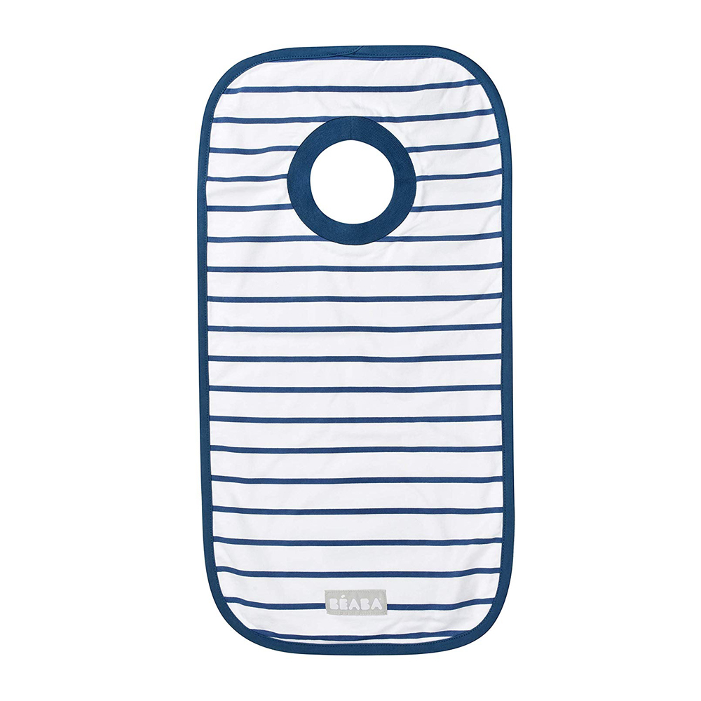 Bavetica pentru copii Beaba Evolutive este o bavetica din bumbac, cu guler elastic, pentru copii incepand de la nastere. Bavetica este fabricata din bumbac, iar datorita dimensiunilor sale acopera aproape tot pieptul copilului. Bavetica are o dimensiune de 53 x 27 cm. Avantajul esential al bavetei este gulerul elastic, seamanator cu un tricou. Bavetica Beaba Evolutive este, de asemenea ideala pentru drum, deoarece poate fi usor si rapid pliata intr-un saculet mic cusut in partea din spate si nu ocupa spatiu intre bagaje. Bavetica Beaba poate fi spalata in masina de apalat la 30°C.