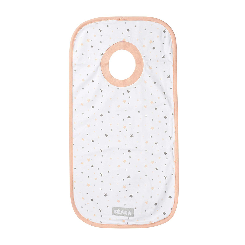 Bavetica pentru copii Beaba Evolutive este o bavetica din bumbac, cu guler elastic, pentru copii incepand de la nastere. Bavetica este fabricata din bumbac, iar datorita dimensiunilor sale acopera aproape tot pieptul copilului. Bavetica are o dimensiune de 53 x 27 cm. Avantajul esential al bavetei este gulerul elastic, seamanator cu un tricou. Bavetica Beaba Evolutive este, de asemenea ideala pentru drum, deoarece poate fi usor si rapid pliata intr-un saculet mic cusut in partea din spate si nu ocupa spatiu intre bagaje. Bavetica Beaba poate fi spalata in masina de apalat la 30°C.