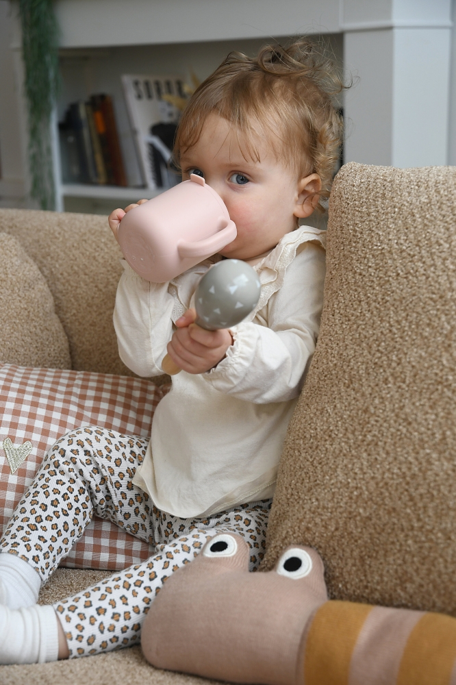 Datorita celor 2 manere mari, copilul poate prinde cana cu ambele maini si poate controla mai bine inclinarea, castigand incredere la masa. Textura moale din silicon este antiderapanta si confortabila, iar marginea neteda a canei (folosita fara capac) permite trecerea usoara spre bautul din cana clasica. Cana de antrenament silicon Beaba Cotton Candy incurajeaza autonomia la masa si ii ajuta pe cei mici sa isi coordoneze mai bine miscarile.