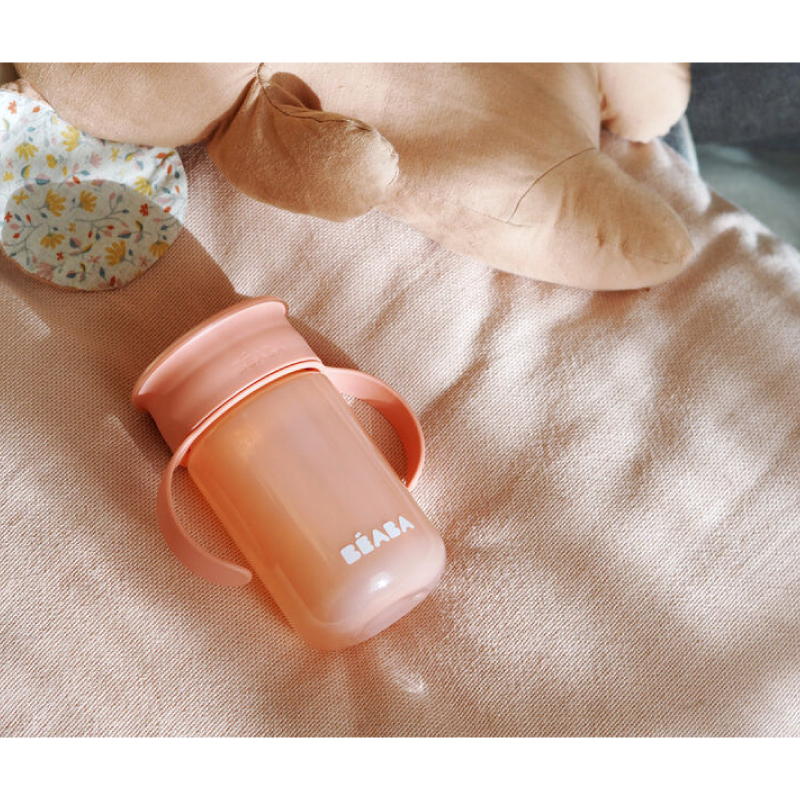 Cana de invatare Beaba 340 ml Pink – usoara si practica, ideala pentru ca cei mici sa invete sa bea singuri.