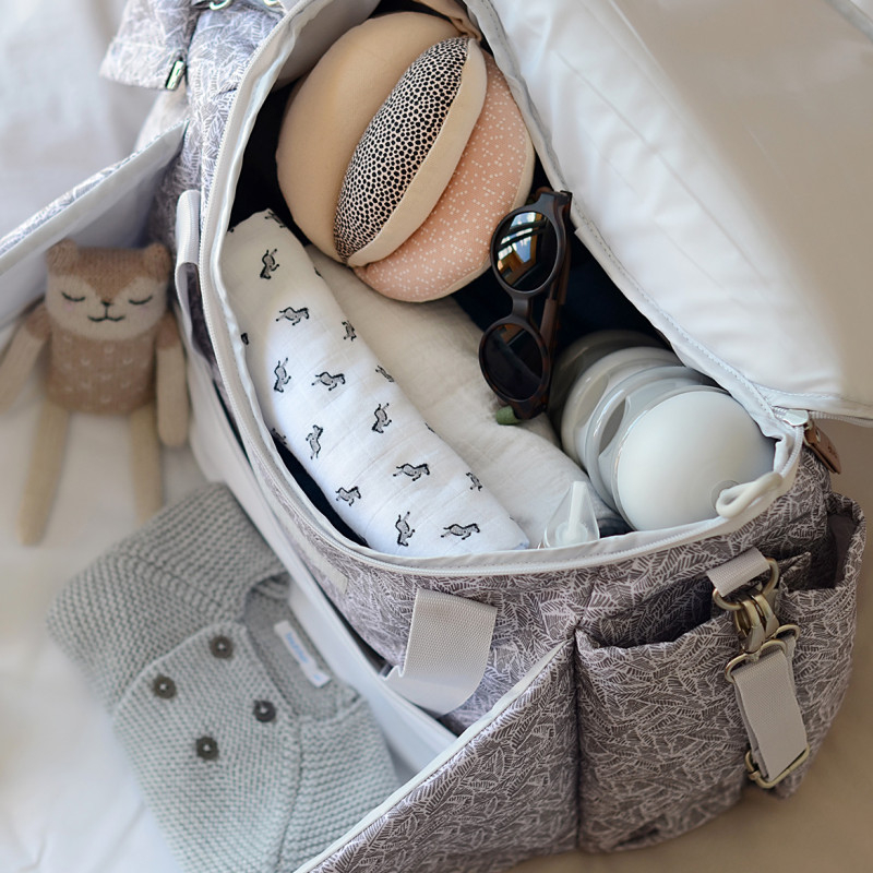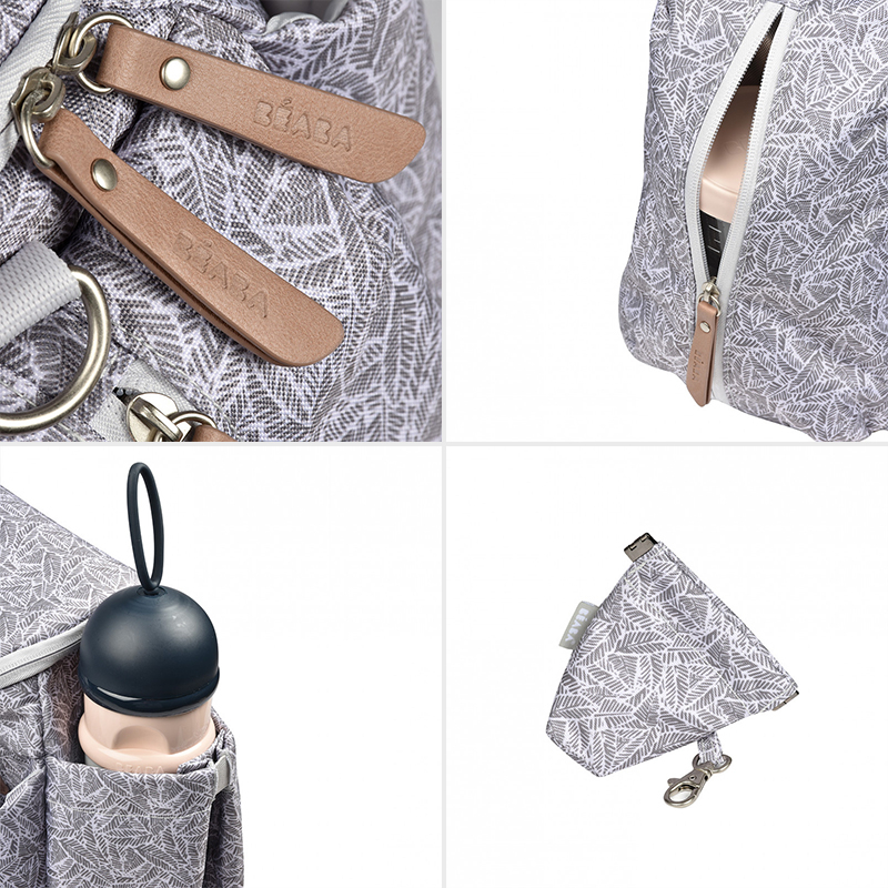 Compartimentele sale multiple faciliteaza organizarea pentru a gasi cu usurinta articolele pe care le cautati. Compartimentul termoizolant, gentuta antibacteriana pentru transportul in siguranta a suzetei, salteluta de infasat detasabila, precum si curelele de prindere pe carucior, au fost concepute pentru a imbunatati confortul plimbarilor cu bebelusul.