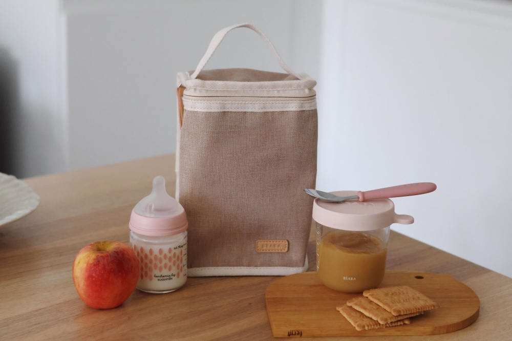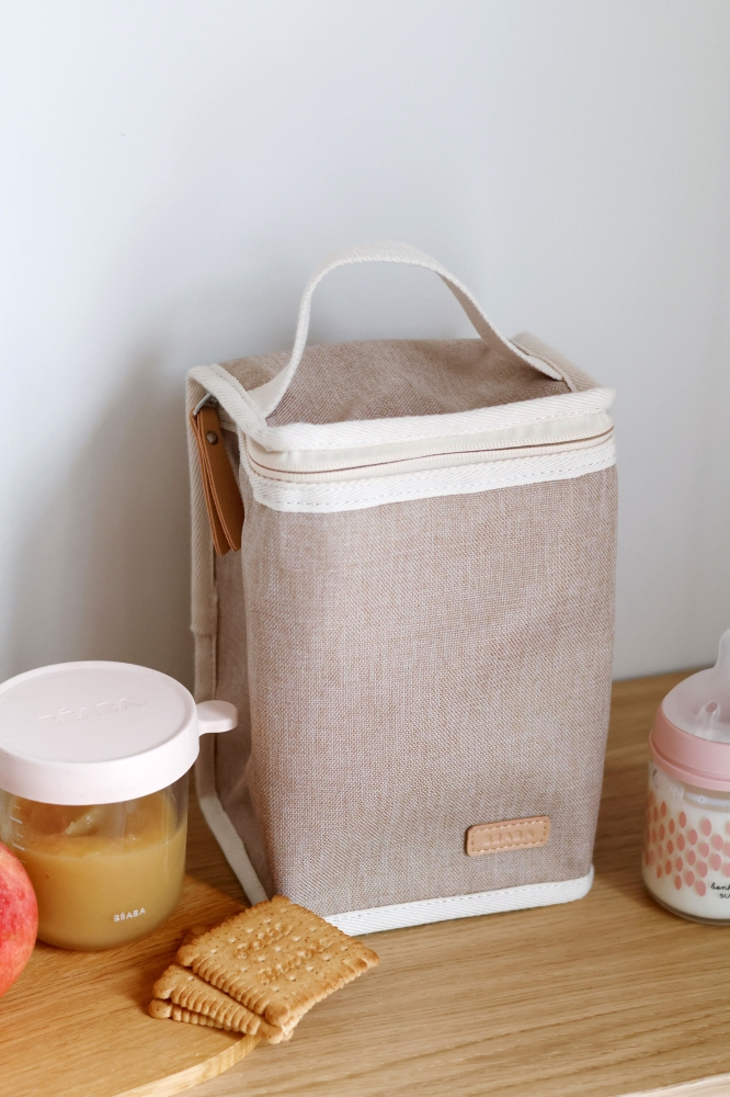 Geanta izoterma Beaba Eco Heather Gazelle are un maner de transport solid, care o face usor de purtat in mana sau de agatat de carucior. Forma dreptunghiulara ofera stabilitate, iar atunci cand este goala, materialul suplu permite plierea gentii pentru a ocupa cat mai putin spatiu in bagaj sau in dulap. Este un companion practic pentru gradinita, parc, excursii sau drumuri mai lungi cu masina.