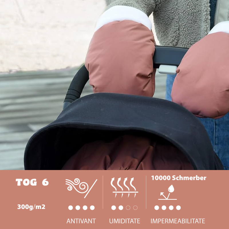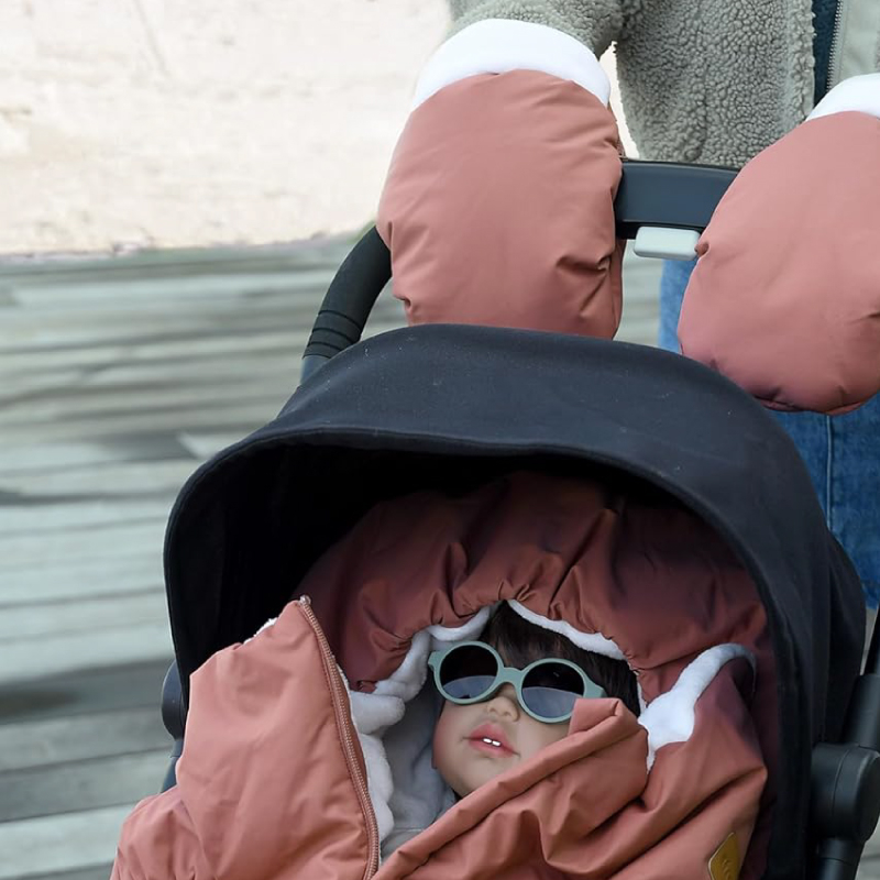 Manusi pentru carucior Beaba Heather Terracotta – impermeabile si captusite cu polar, ofera caldura si protectie maxima pentru vremea rece.