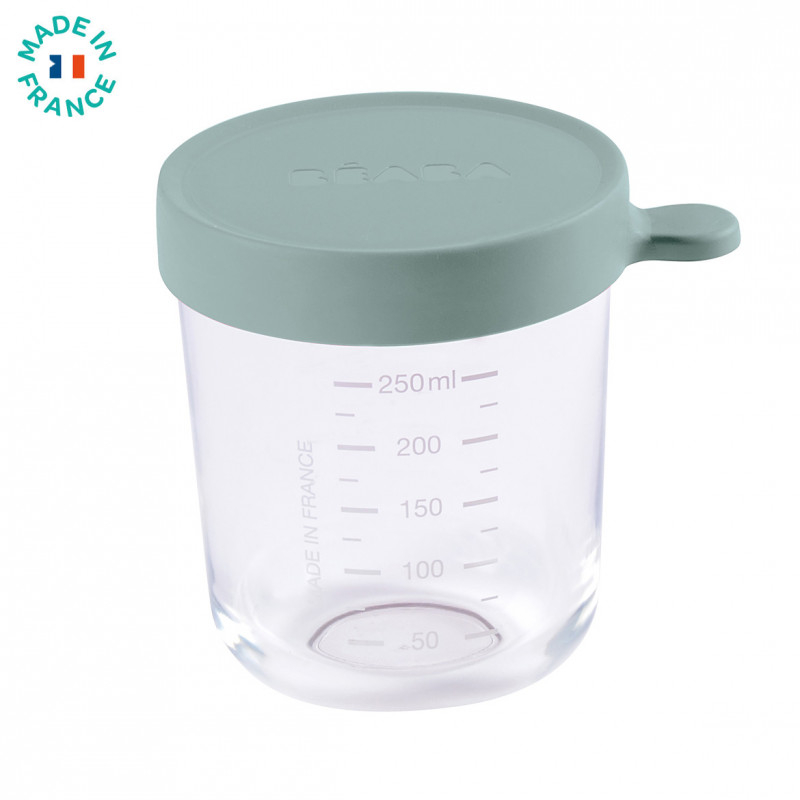 Recipient din sticla, cu inchidere ermetica, ideal pentru refrigerarea si pastrarea hranei bebelusului.