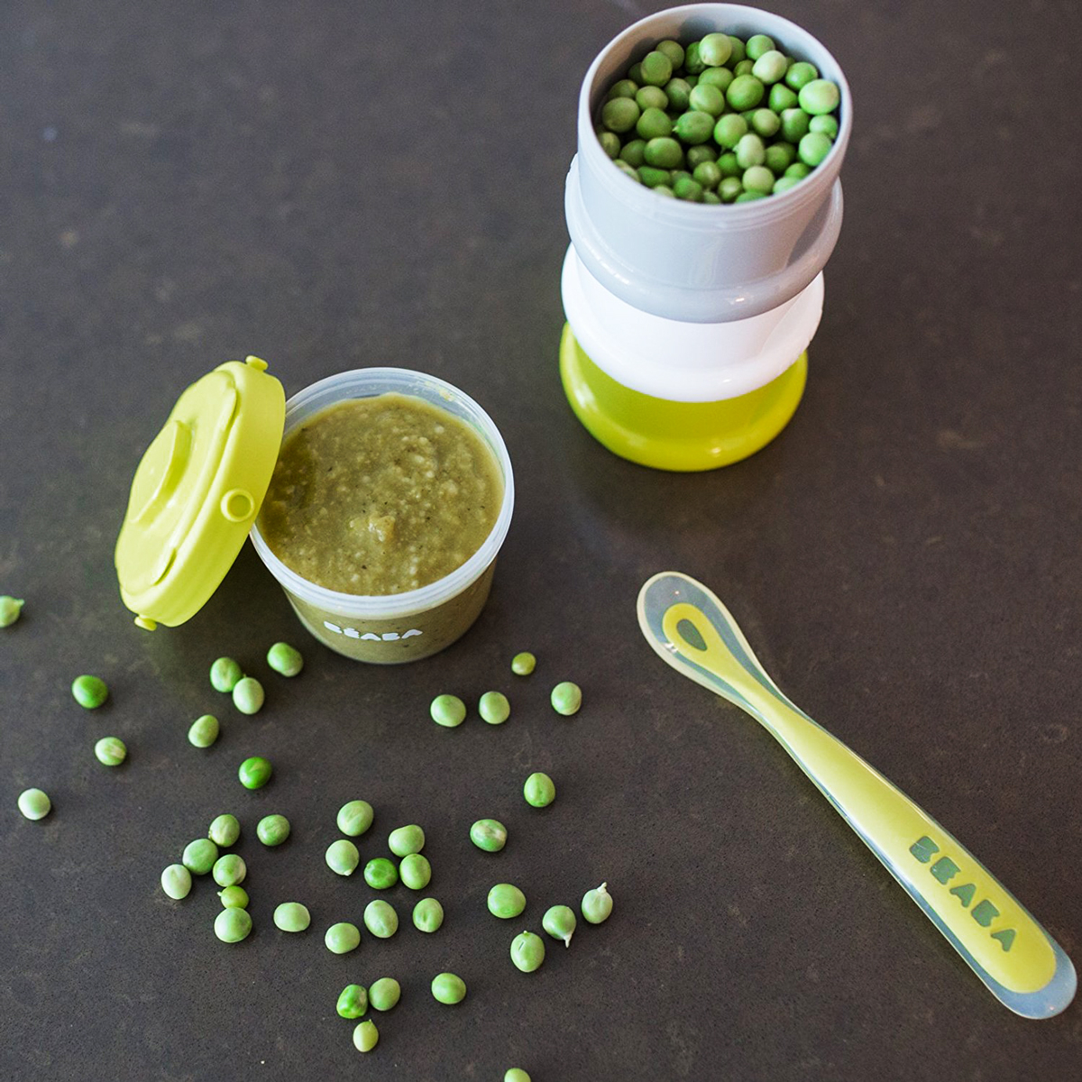 Cu recipientul de lapte praf Beaba puteti economisi timp, pregatindu-va in prealabil dozele de lapte. Este 100% etans, include 3 compartimente care contin pana la 9 doze fiecare. Cand copilul tau creste, poate fi folosi ca recipient pentru gustari.