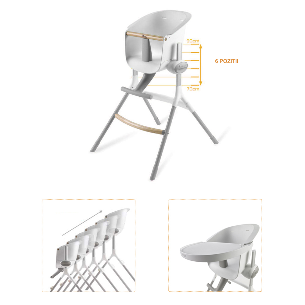 Copilasul, incepand cu varsta de 6 luni, varsta la care invata sa stea si sa manance de unul singur, va putea sta confortabil pe scaun in timp ce isi ia micul dejun, pranzul sau cina, impreuna cu toata familia.