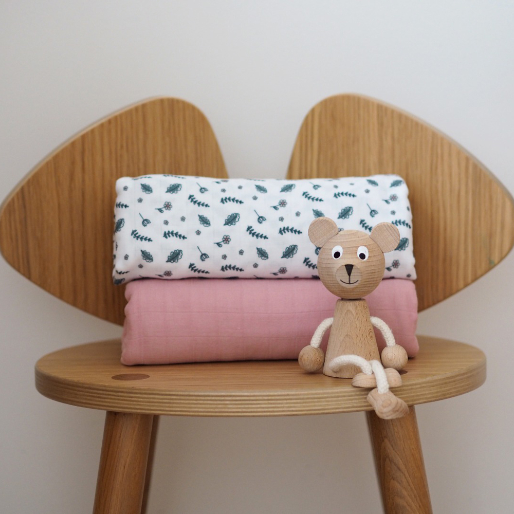Descriere Set 2 Museline Beaba bumbac 120x120 cm Bridal Pink/Flowery Countryside