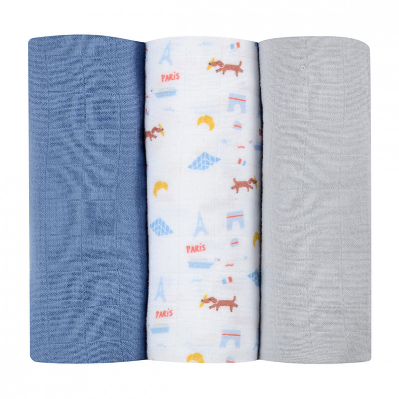 Set 3 Museline Beaba bumbac organic 70x70 cm Paris Blue