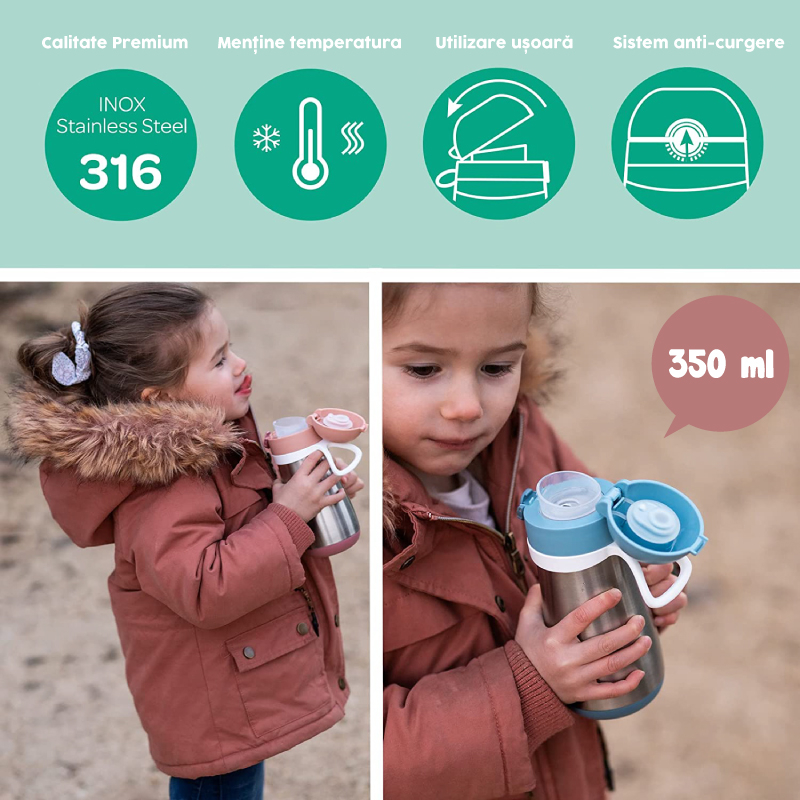 Termos din otel inoxidabil, fara tetina sau pai! Ultima etapa de invatare pentru copilul tau.