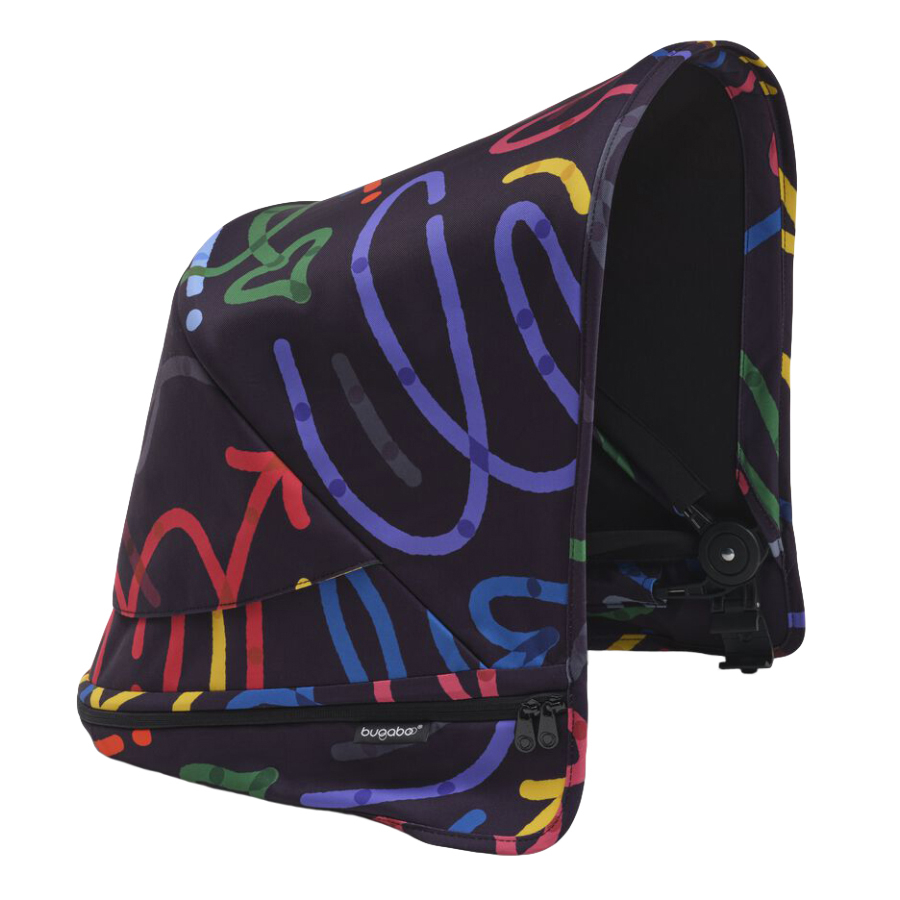 Capotina Bugaboo Donkey 5 este accesoriul perfect pentru carucior. Designul colectiei Bugaboo Art of Discovery cu imprimeu jucaus dar sofisticat a fost creat de renumitul artist olandez Jordy van den Nieuwendijk si prezinta palete vibrante de culori si structuri de forme simplificate, inspirate din viata plina de intorsaturi a parintilor. Avand un design imbunatatit, capotina Bugaboo Donkey 5 vine cu fereastra peekaboo si panouri din plasa integrate. Cu o rata de protectie solara UPF 50+ protejeaza copilul nu numai de razele solare, ci si de vant si ploaie.