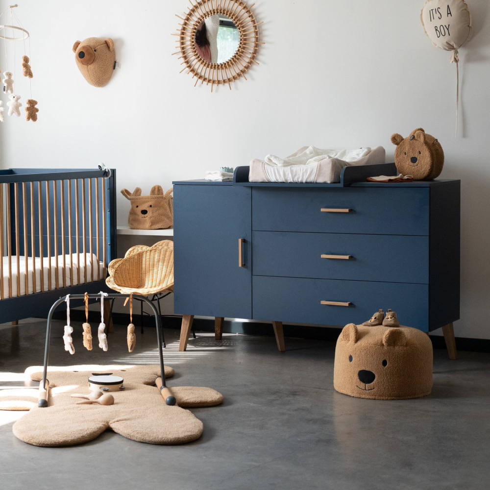 Comoda Childhome Bold Blue 137x77x98 cm cu masa de infasat face parte din colectia Childhome Bold Blue. Combinatia de albastru intens cu elemente din lemn masiv de inalta calitate, ofera o senzatie confortabila, calda si primitoare in camera celui mic.