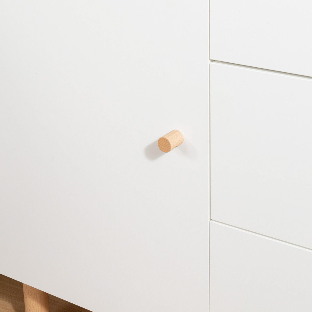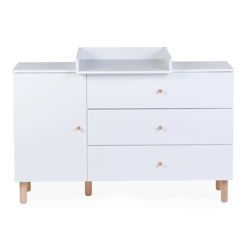 Comoda Childhome Wonder White este compusa din 3 sertare, dulap cu 2 rafturi si masa de infasat detasabila. Echipata cu un sistem de inchidere silentios, nu vei trezi niciodata bebelusul inchizand un sertar.