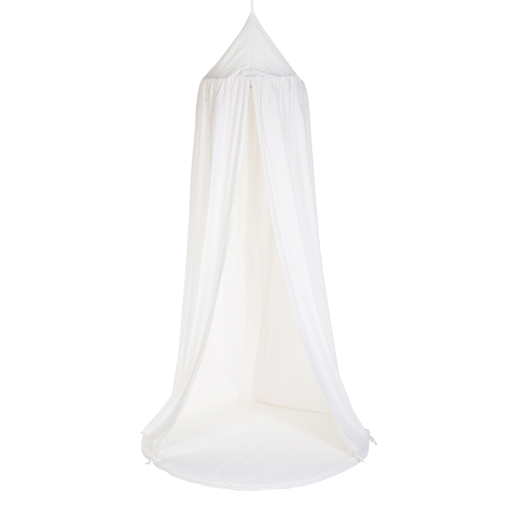 Acest frumos cort cu baldachin ofera imediat o nota eleganta camerei copiilor. Agatati baldachinul peste patutul celui mic, pentru a crea cel mai confortabil loc in care se poate odihni. In partea de sus a baldachinului este un inel metalic, astfel incat sa il puteti agata cu usurinta, iar materialul cade frumos.