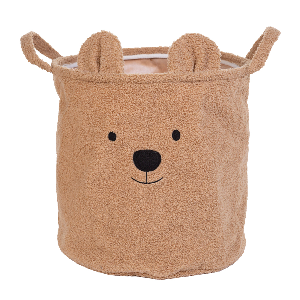 Cosul Teddy de la Childhome este potrivit pentru depozitarea diverselor lucruri, cum ar fi jucarii, haine, etc. Cosul are o dimensiune ideala pentru a fi amplasat pe o comoda de exemplu, astfel poti depozita lucrurile copilului tau intr-un mod practic si frumos. Tesatura moale din plus si urechile dragute de urs ofera o atingere placuta si vesela. Cosul are o captuseala interioara usor de curatat cu o carpa umeda.