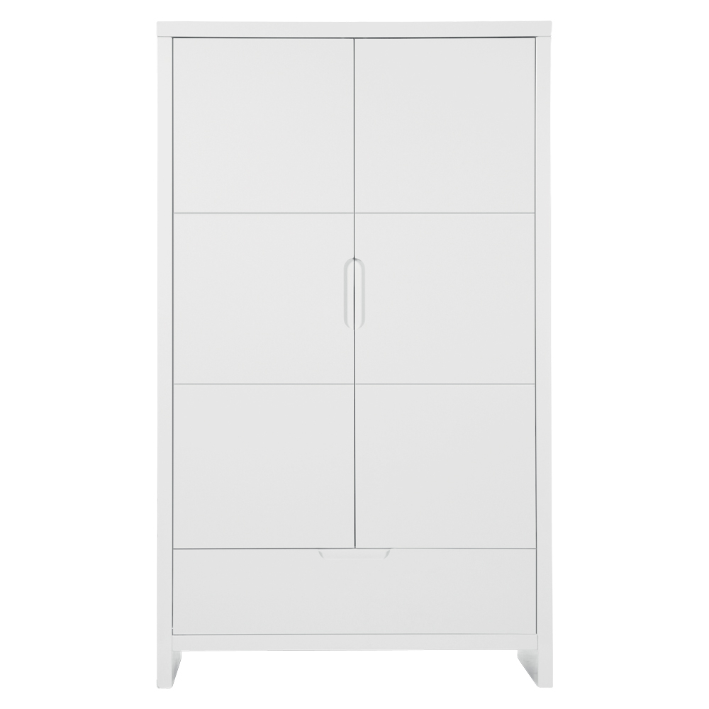 Acest dulap face parte din setul de mobilier pentru camera copii Childhome Quadro White. Dulapul Childhome Quadro White cu 2 usi si 1 sertar are un design modern si se potriveste oricarui interior. Usile si sertarul dulapului sunt echipate cu un sistem de inchidere soft care le permite sa se inchida fara zgomot. Astfel bebelusul tau nu se va trezi cand trebuie sa scoti ceva din garderoba. Dulapul are o bara pentru umerase si rafturi pentru a va oferi tot spatiul necesar hainutelor si obiectelor personale ale celui mic.