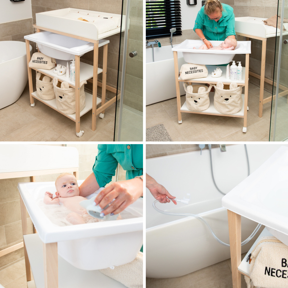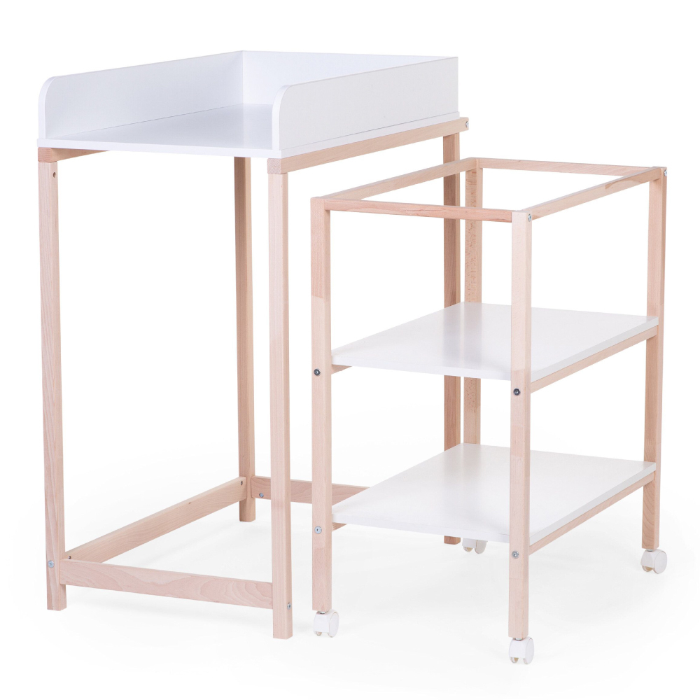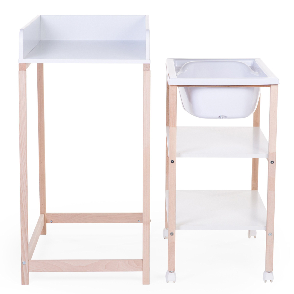 Caracteristici Set masa de infasat si cadita cu suport Childhome Natural/Alb: