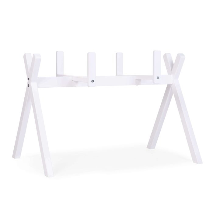 Suport pentru Cos bebe Moise Childhome si Centru de activitati, Lemn Alb, cu doua optiuni de utilizare.