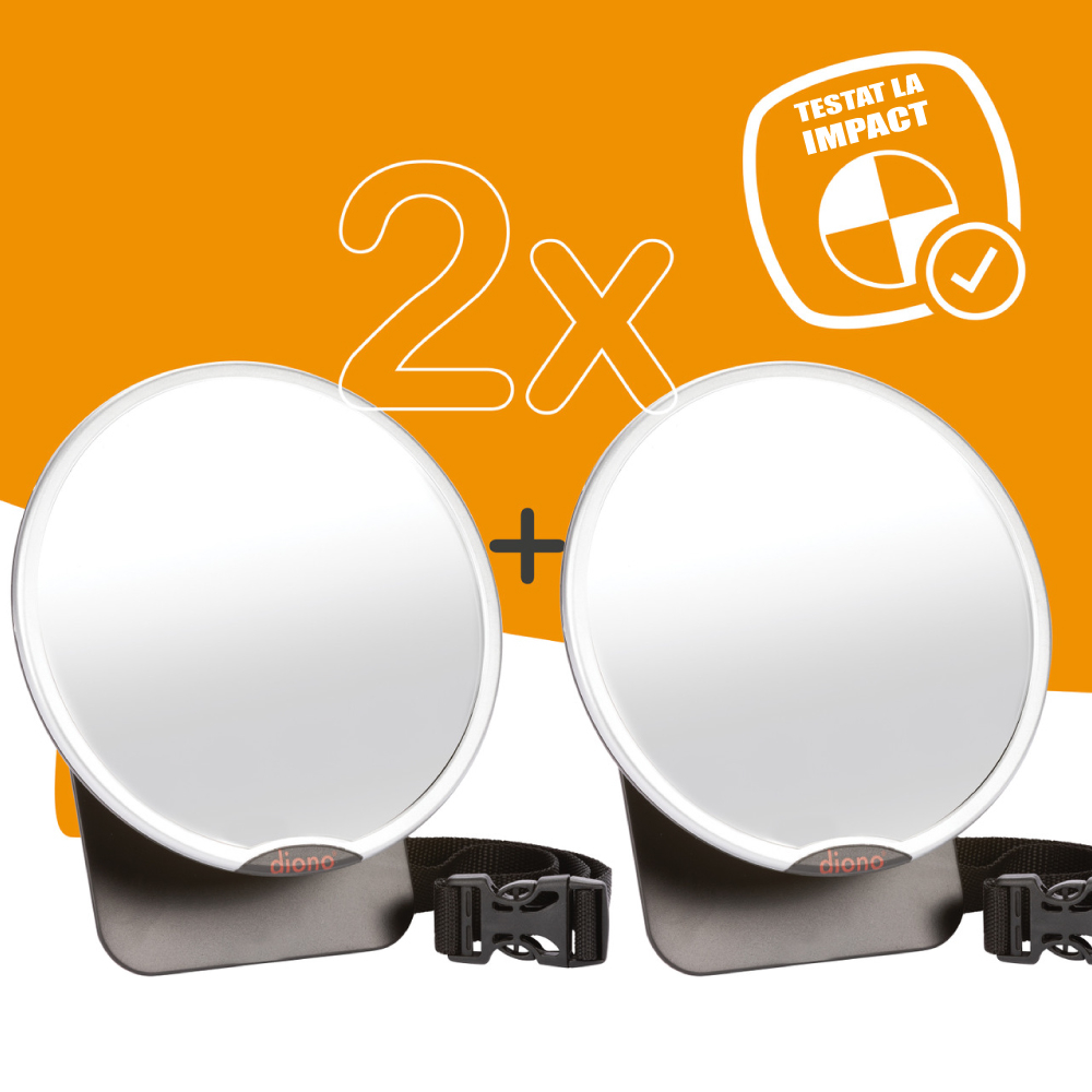Stim ca vrei sa fii cu ochii pe copil, dar si sa conduci in siguranta. Cu oglinda rotativa 360 Diono Easy View poti arunca o privire rapida catre bancheta din spate, mentinandu-ti atentia la drum. Setul include 2 oglinzi retrovizoare.