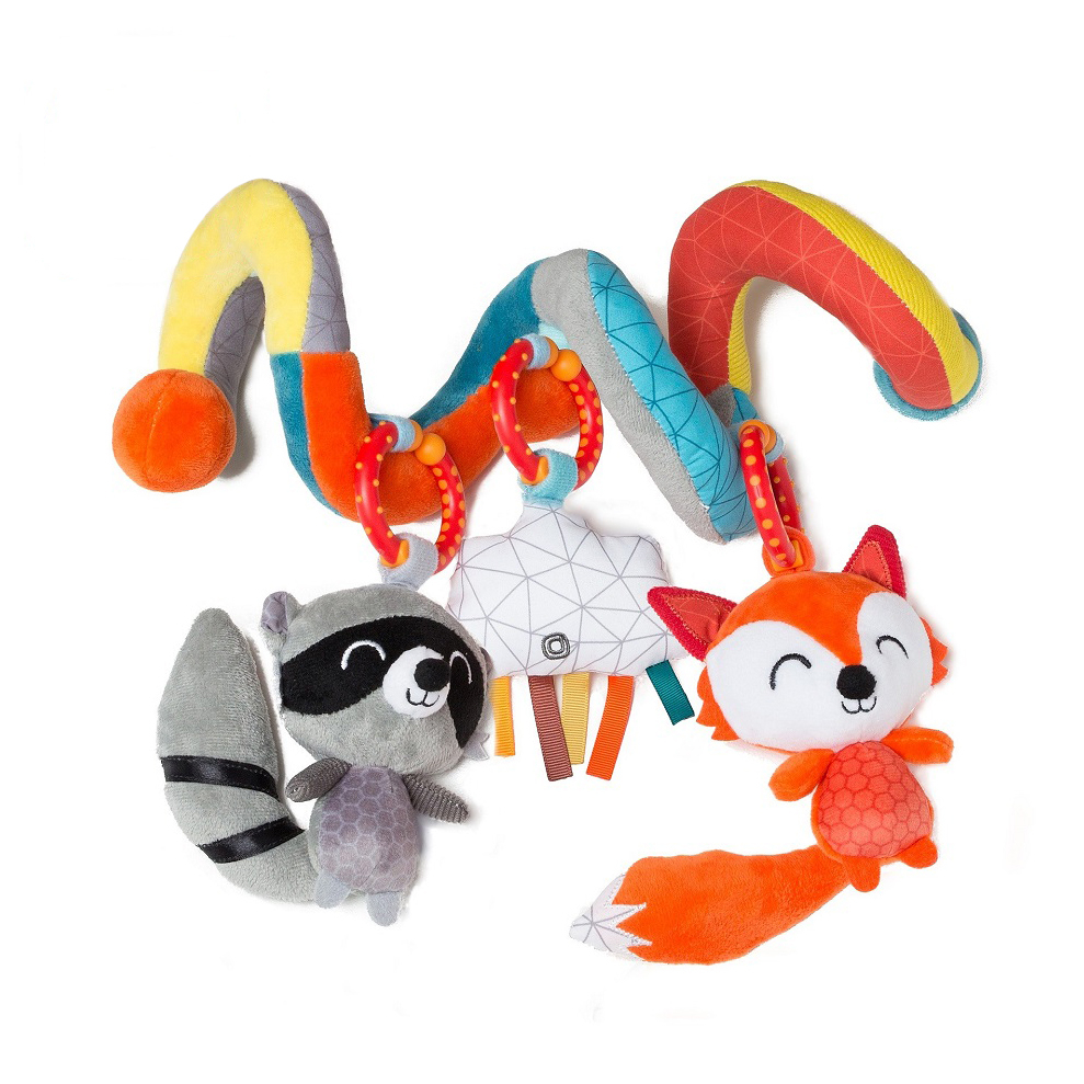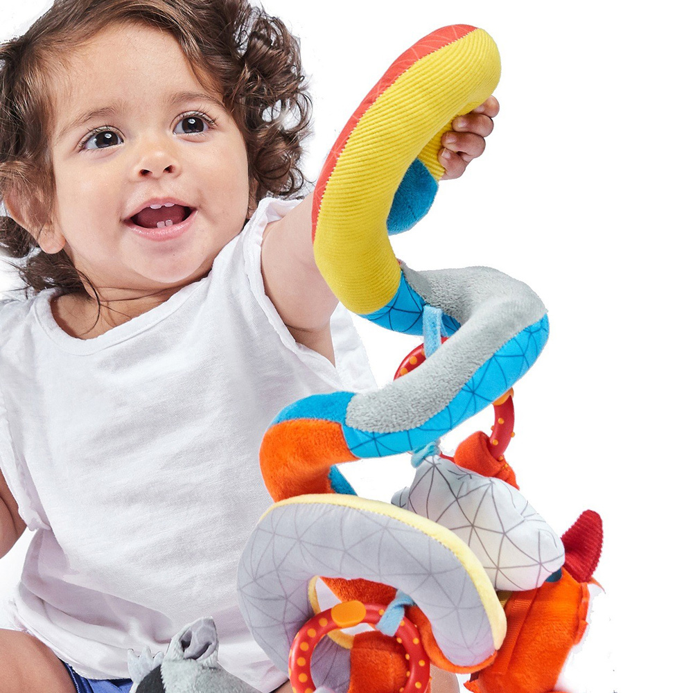 Spirala cu Activitati Diono este o jucarie multifunctionala ideala pentru copii, fiind realizata din materiale cu texturi fine si culori vii pentru a le atrage atentia. Include spirala multicolora, personaje zonaitoare si piuitoare, sunete fosnitoare, steluta cu panglici tactile, agatatori cu rol senzitiv si de inele pentru dentitie.