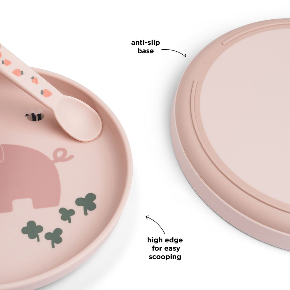 Farfurie Foodie Done by Deer Tiny Farm Powder aduce echilibru intre functionalitate si design jucaus. Cu nuanta powder si motivul Pigee, Farfurie Foodie Done by Deer Tiny Farm Powder ii incurajeaza pe cei mici sa descopere alimente noi si sa manance independent. Baza anti-slip mentine Farfurie Foodie Done by Deer Tiny Farm Powder stabila pe masa pentru mese mai ordonate.