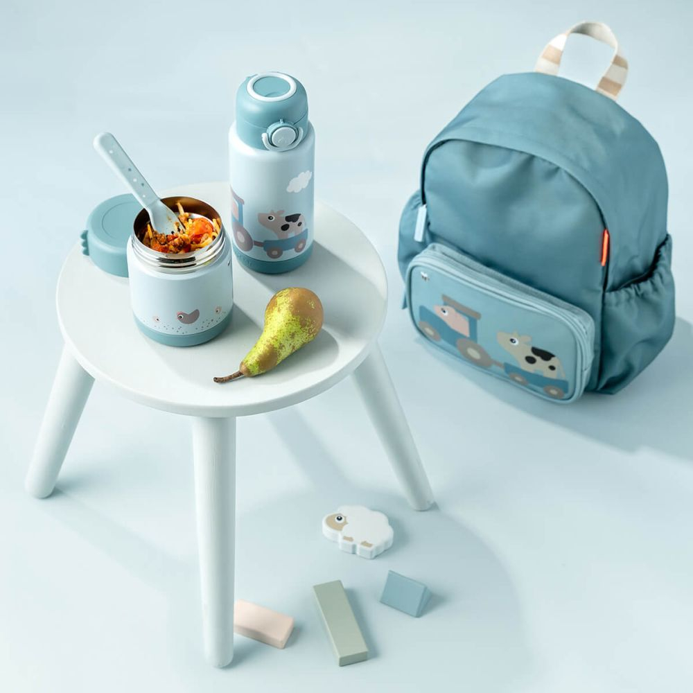 Daca vrei un recipient termic etans, usor de folosit si rezistent, Termos alimente Done by Deer Tiny Farm Blue 300ml ofera echilibrul ideal intre functionalitate, siguranta si design prietenos.