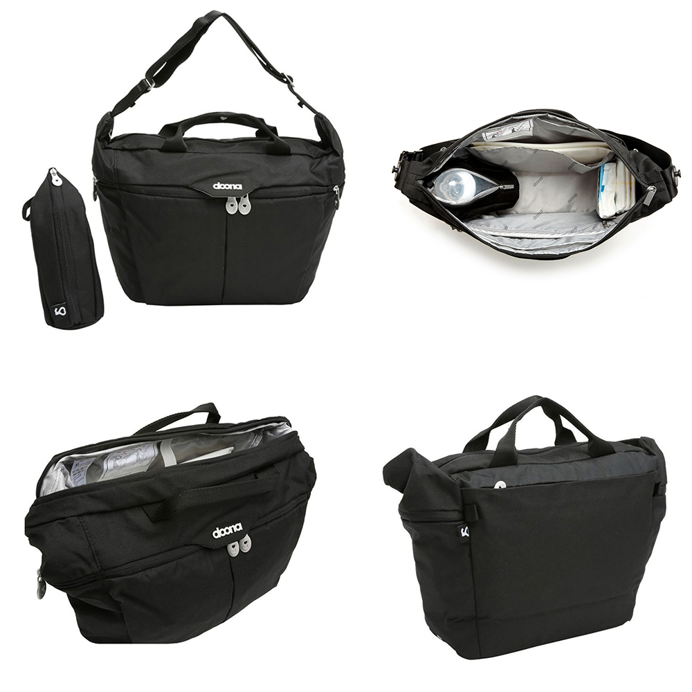 Geanta All Day este conceputa pentru a va completa functionalitatea si stilul Doona. Geanta spatioasa si eleganta se ataseaza in spatele caruciorului Doona si este conceputa pentru a mentine stabilitatea, oferindu-va acces usor la tot ceea ce aveti nevoie pentru confortul copilului dvs. pe timpul iesirilor lungi. In geanta Doona All Day este inclusa o salteluta de infasat, gentuta termoizolanta pentru biberon si compartimente practice. Fermoarele pentru deschidere superioara si laterala permit accesul usor la elementele depozitate. Conectorii unici cu eliberare rapida Doona pastreaza geanta All Day fixata.