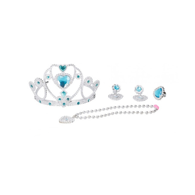 Cu acest set minunat orice fetita devine o mica printesa. Tiara, cerceii, colierul si inelul vor completa armonios orice rochita care le transforma pe micile domnisoare in personaje de basm.