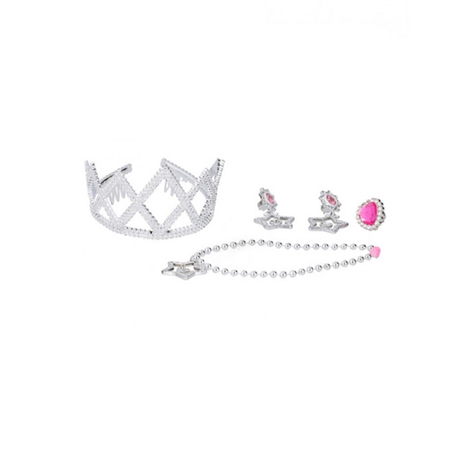 Cu acest set minunat orice fetita devine o mica printesa. Tiara, cerceii, colierul si inelul vor completa armonios orice rochita care le transforma pe micile domnisoare in personaje de basm.