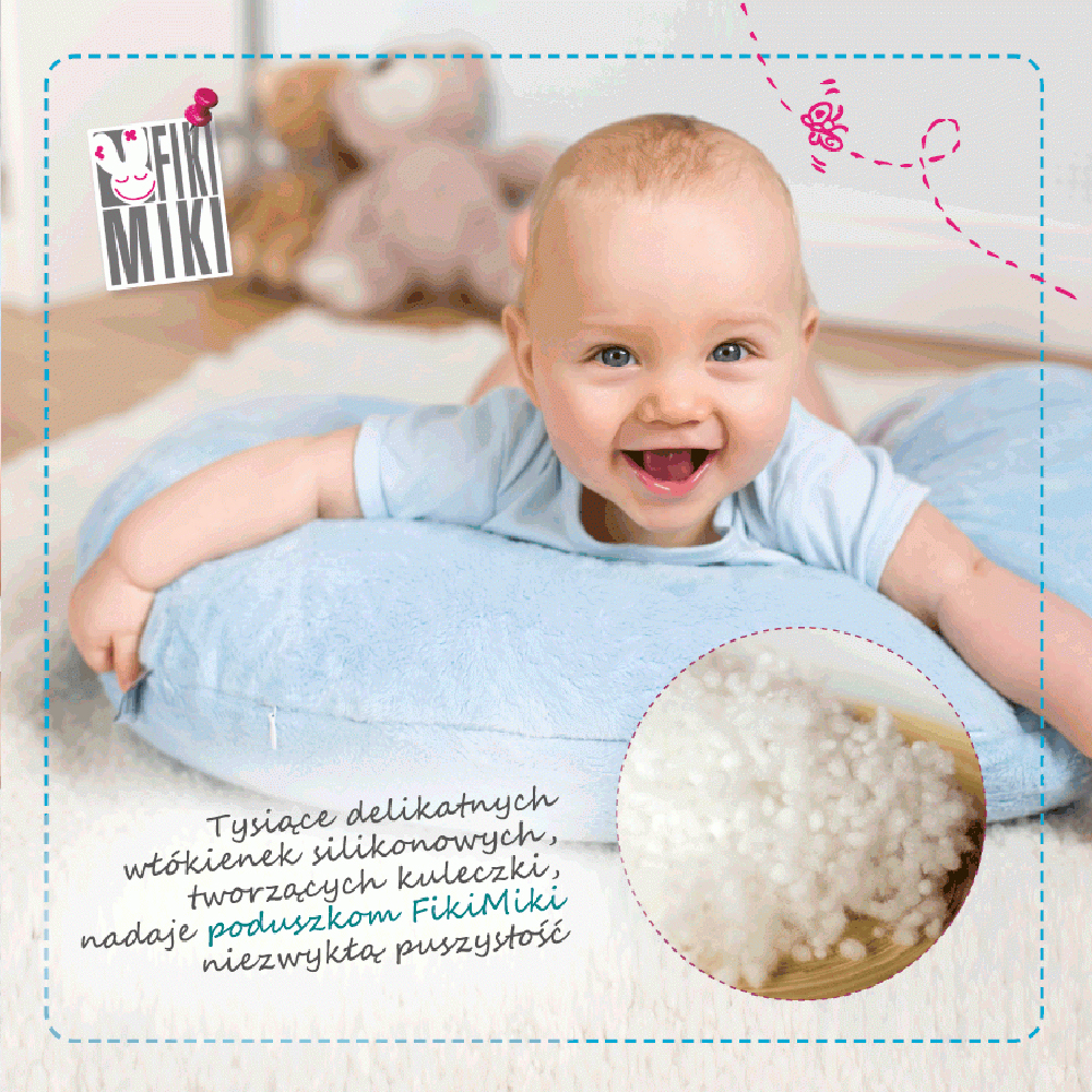Perna de alaptare fiziologica Fiki Miki este umpluta cu fibre din silicon, ceea ce ii confera numeroase atuuri comparativ cu pernele de alaptat clasice umplute cu bile de polistiren: