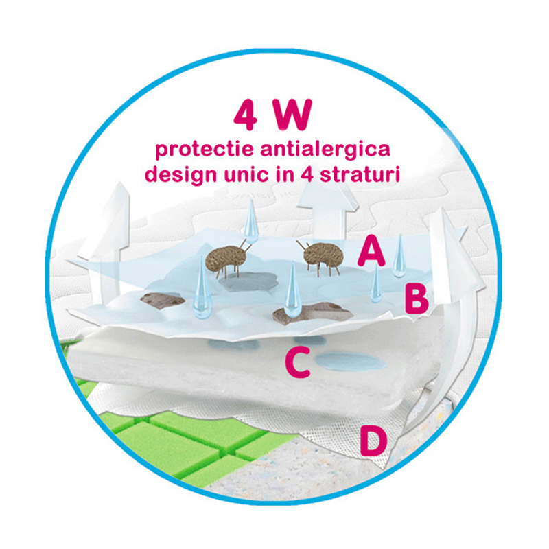 A: un strat igienizat ce ofera protectie impotriva acarienilor, mucegaiului si a mirosurilor neplacute.