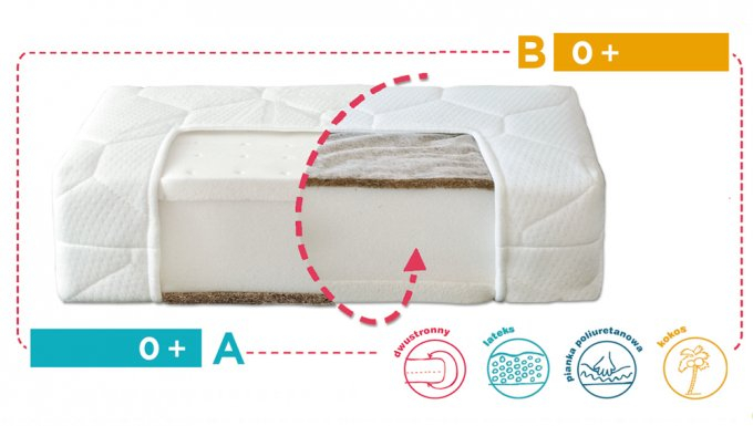Aceasta saltea se foloseste de la nastere pe ambele fete (nou-nascutul poate fi culcat atat pe fata A, cat si pe fata B inca din prima zi).