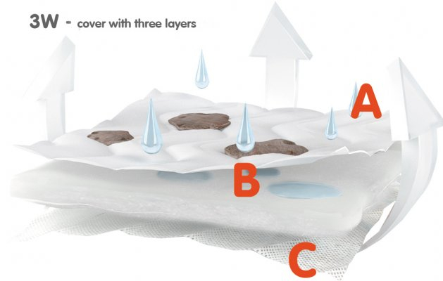 Salteaua are o husa din polyester 100% si este matlasata, la fel ca toate husele din seria Prestige. Aceasta saltea este compusa din 4 straturi: