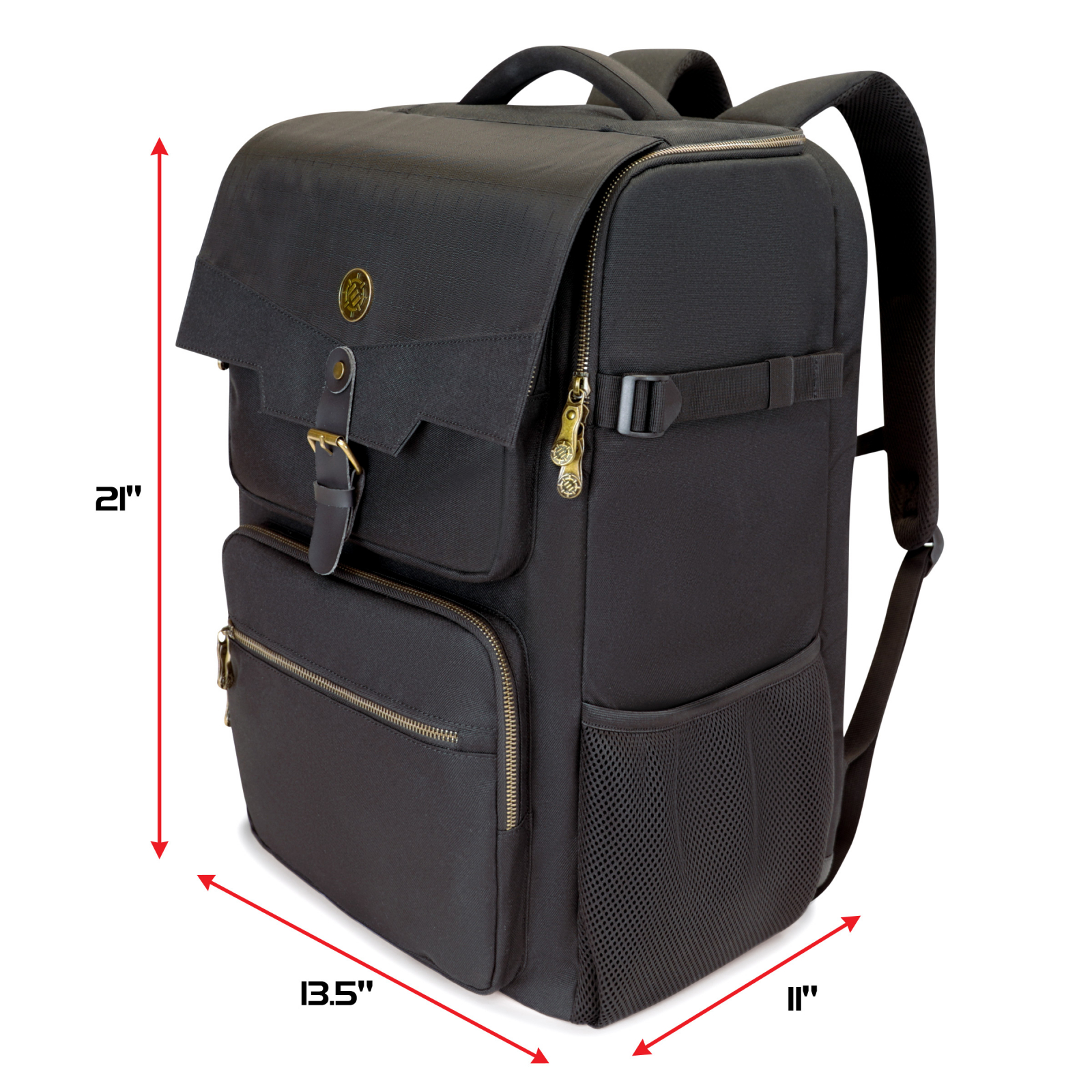 Pentru a domina orice batalie, am creat un compartiment inspirat de o biblioteca, conceput sa tina pana la 8 carti RPG asezate vertical. Compartimentul lateral al acestui rucsac pentru DnD faciliteaza accesul si organizarea esentialelor RPG ale unui Dungeon Master, de la ghiduri si carti de reguli pana la bibliorafturi si caiete. Dimensiuni: 53,8 x 30,5 x 20 cm.