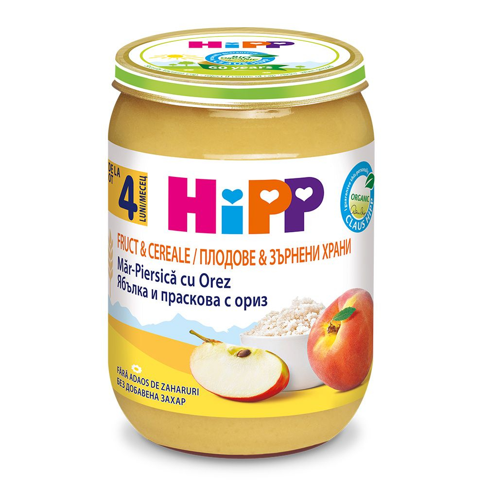 Caracteristici Piure HiPP Fruct&Cereale piersica-mar cu orez 190g: