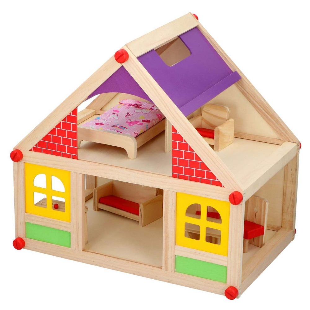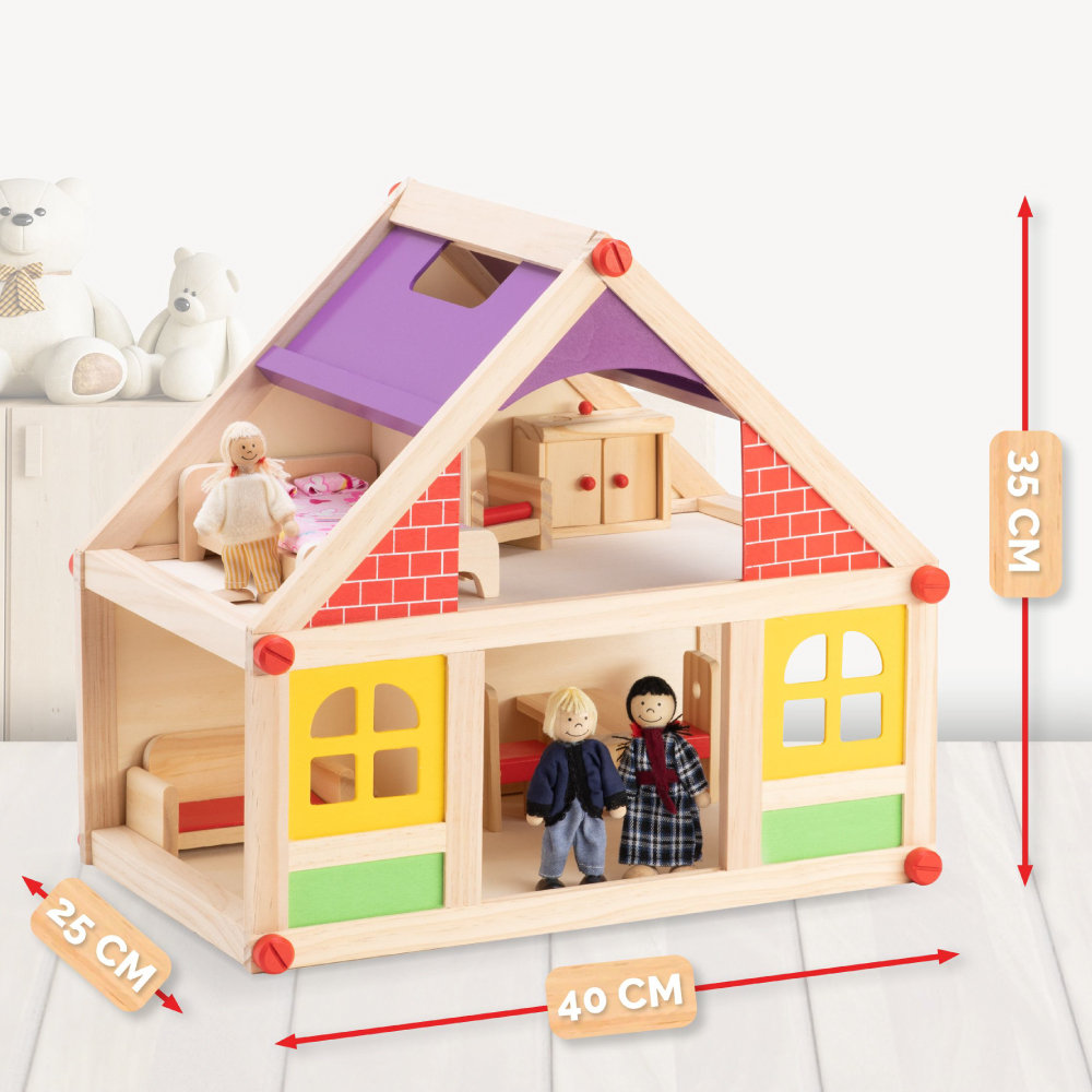 Copilul tau se va distra multe ore cu aceasta casa de papusi din lemn. Poate imita situatii reale de acasa sau poate inventa tot felul de jocuri de rol distractive. Acest lucru stimuleaza imaginatia si creativitatea.