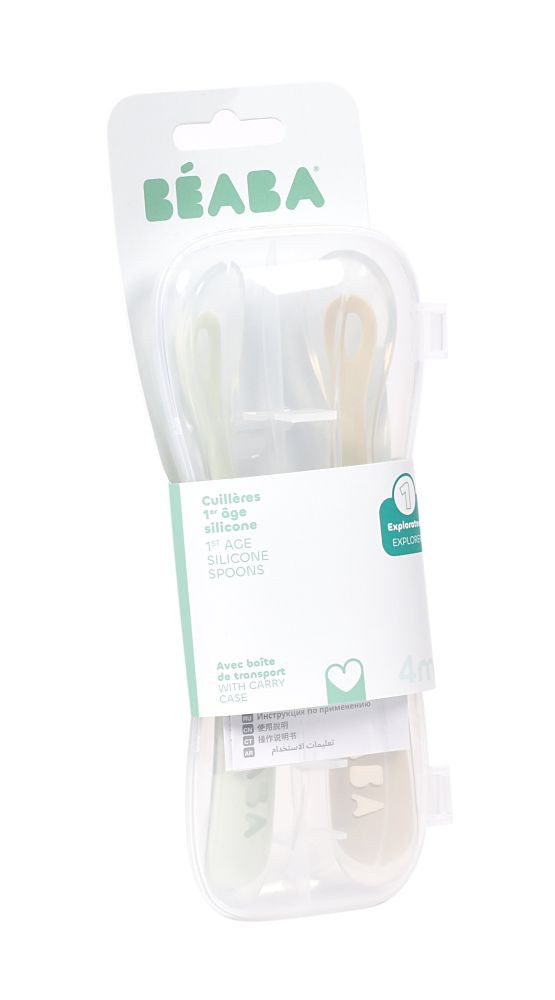 Set 2 lingurite silicon Beaba +4 luni cu cutie de transport Clay are un design ergonomic, gandit pentru primele mese. Cupa putin adanca ajuta la evitarea supraincarcarii, astfel incat bebelusul sa goleasca mai usor lingurita. Manerul lung ofera control bun parintelui si acces practic la diferite tipuri de recipiente.