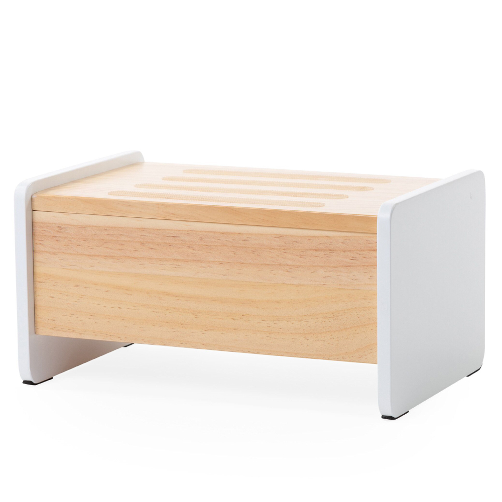 Treapta inaltator Childhome 35x23x18 cm Lemn Natural/Alb, robusta, stabila si cu protectii anti-alunecare!