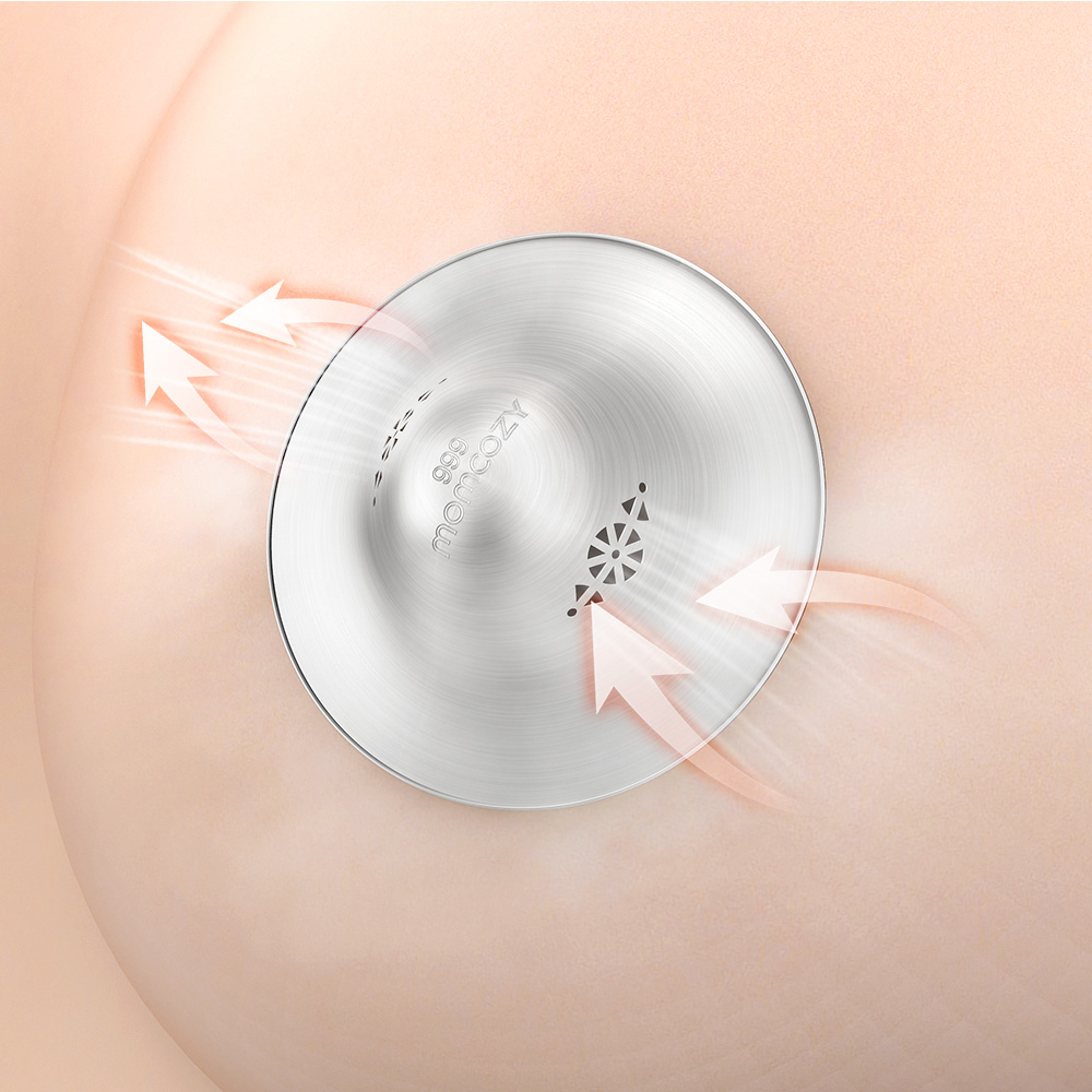 Protectie alaptare Momcozy argint 45 mm set 2 buc Regular este un set de cupe din argint 999, concepute sa acopere mamelonul si areola, pentru a reduce frecarea cu sutienul si a sustine confortul intre sesiuni de alaptare. Designul perforat este gandit pentru respirabilitate si circulatie mai buna a aerului in timpul purtarii.