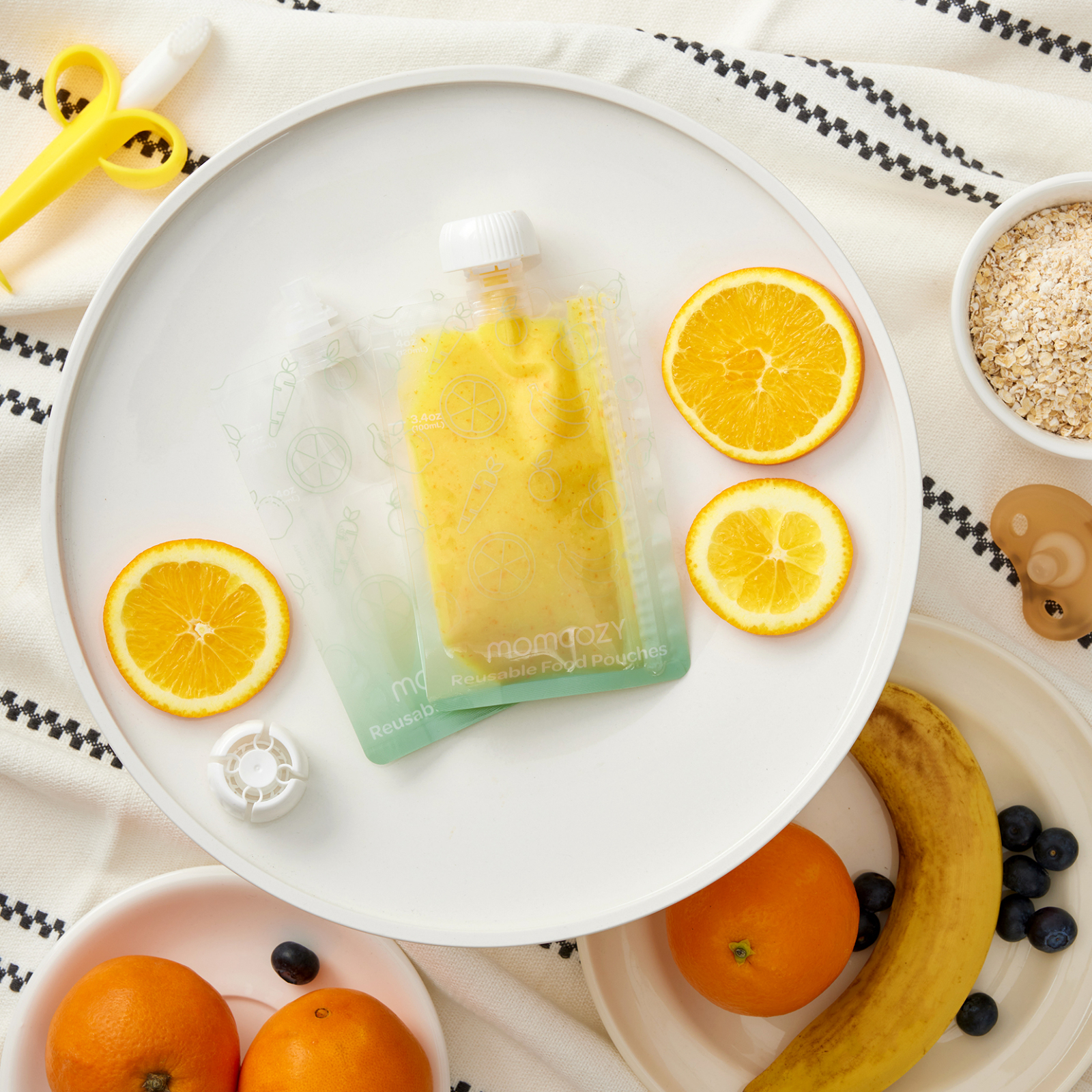 Pungi alimentare reutilizabile Momcozy 100 ml set 10 buc sunt pungi tip squeeze, concepute pentru hranire si depozitare usoara a alimentelor pentru bebelusi si copii (piureuri, iaurt, smoothie-uri, gustari). Pungile au design stand-up (stau in picioare) pentru umplere mai simpla si utilizare fara mizerie.