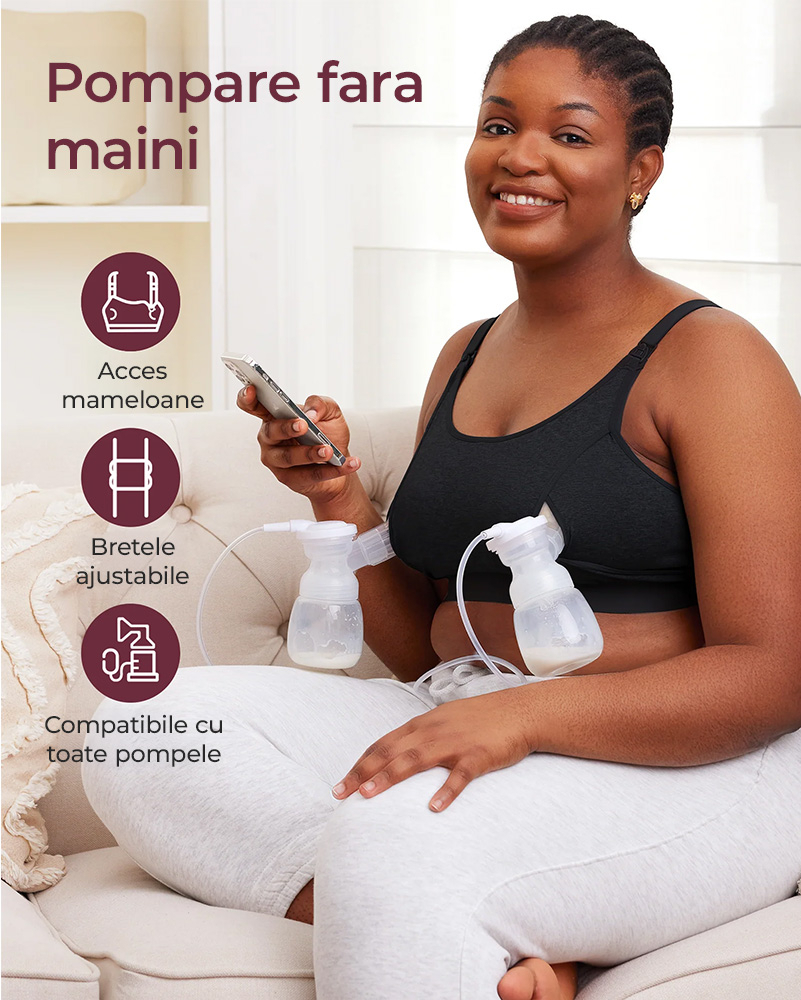 Daca vrei un singur sutien pentru mai multe momente ale zilei, Sutien alaptare Momcozy pentru pompa de san Hands-free YN08 Black L combina accesul rapid pentru alaptare cu sustinerea necesara pentru pompare hands-free. Este o alegere practica atunci cand vrei sa reduci schimbarile de sutien intre sesiuni si sa pastrezi confortul pe tot parcursul zilei.