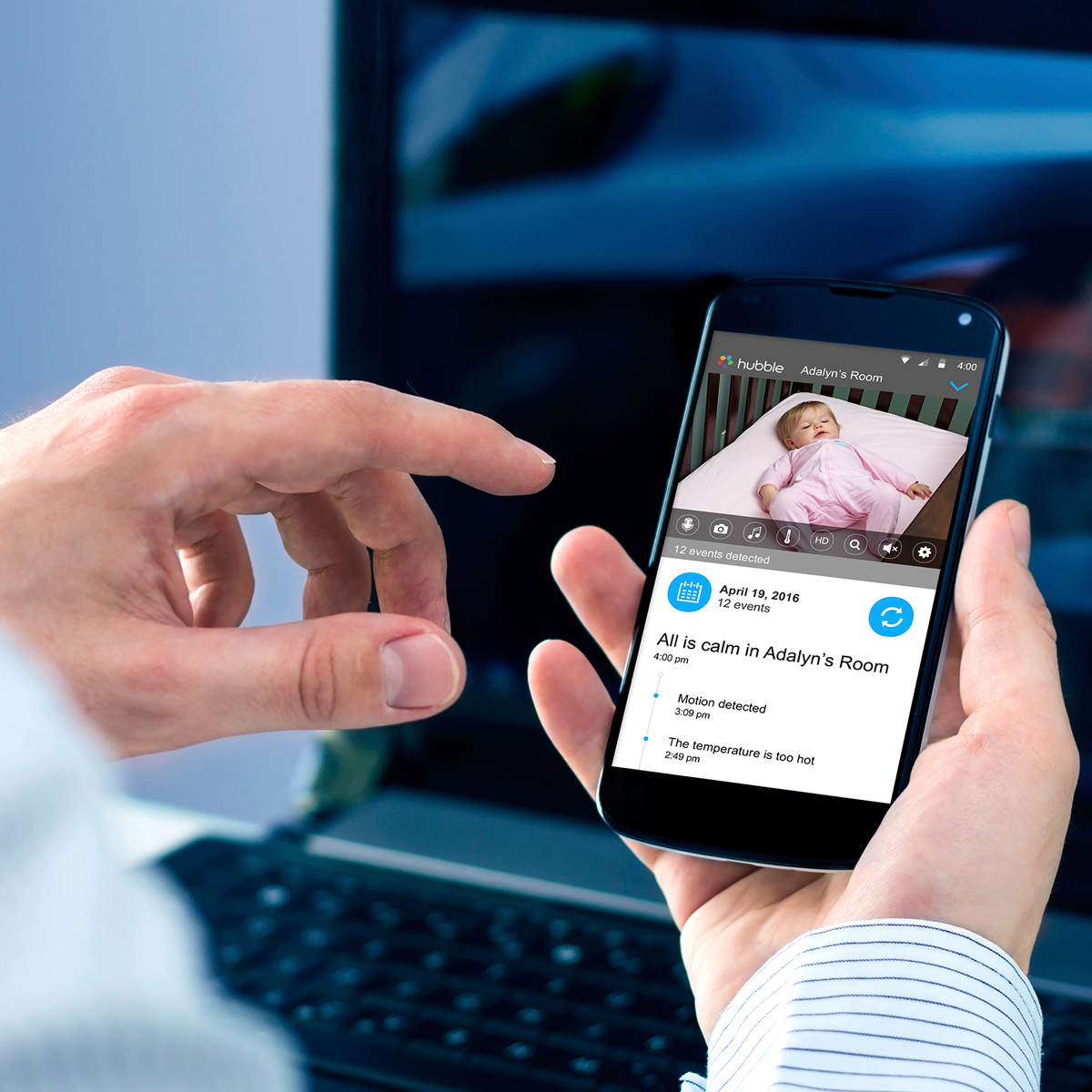 Chiar daca te afli la birou, sau daca estii departe de tara, cu ajutorul noului monitor Motorola MBP855 Connect si a aplicatiei speciale Hubble Connected™ poti afla in orice moment ce se petrece cu copilul tau.
