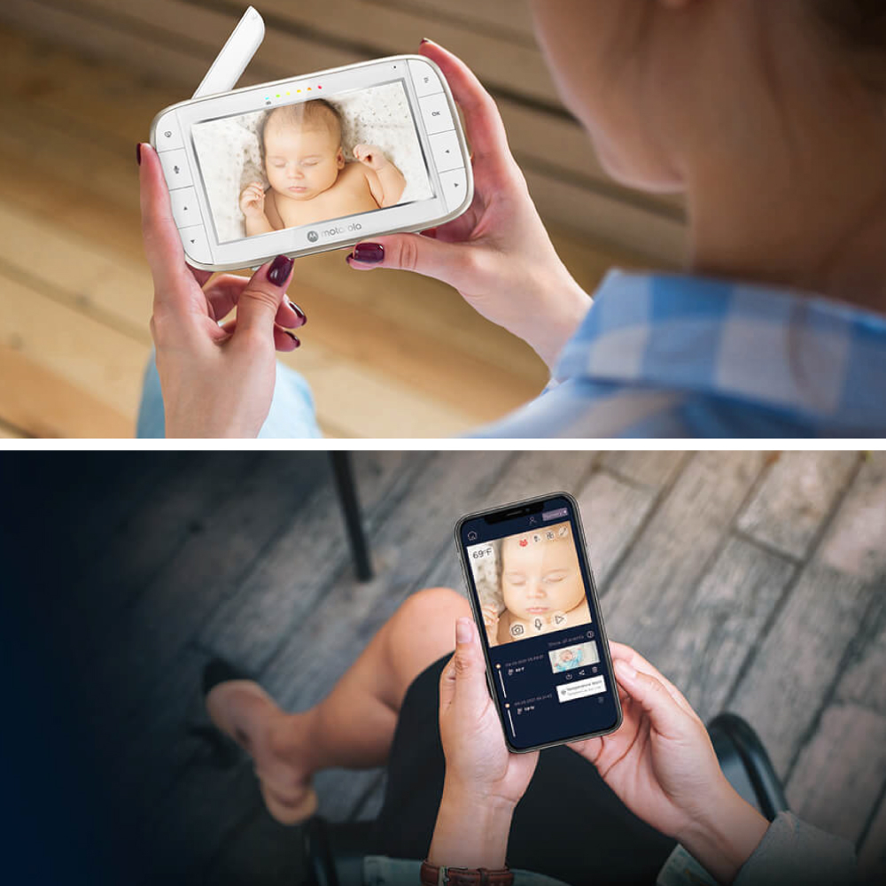 Chiar daca te afli la birou sau esti departe de tara, cu ajutorul noului Video Monitor Digital + Wi-Fi Motorola VM855 Connect si a aplicatiei Motorola Nursery poti afla in orice moment ce se petrece cu copilul tau. Camera portabila, cu panoramare, inclinare, zoom la distana si vedere pe timp de noapte, se conecteaza la aplicatia Motorola Nursery.