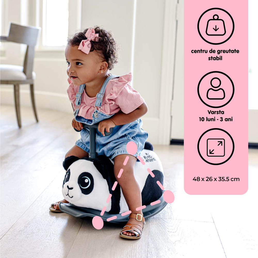 Balansoar cu roti My Buddy Wheels Panda - 2 in 1, balans si plimbare pe roti.