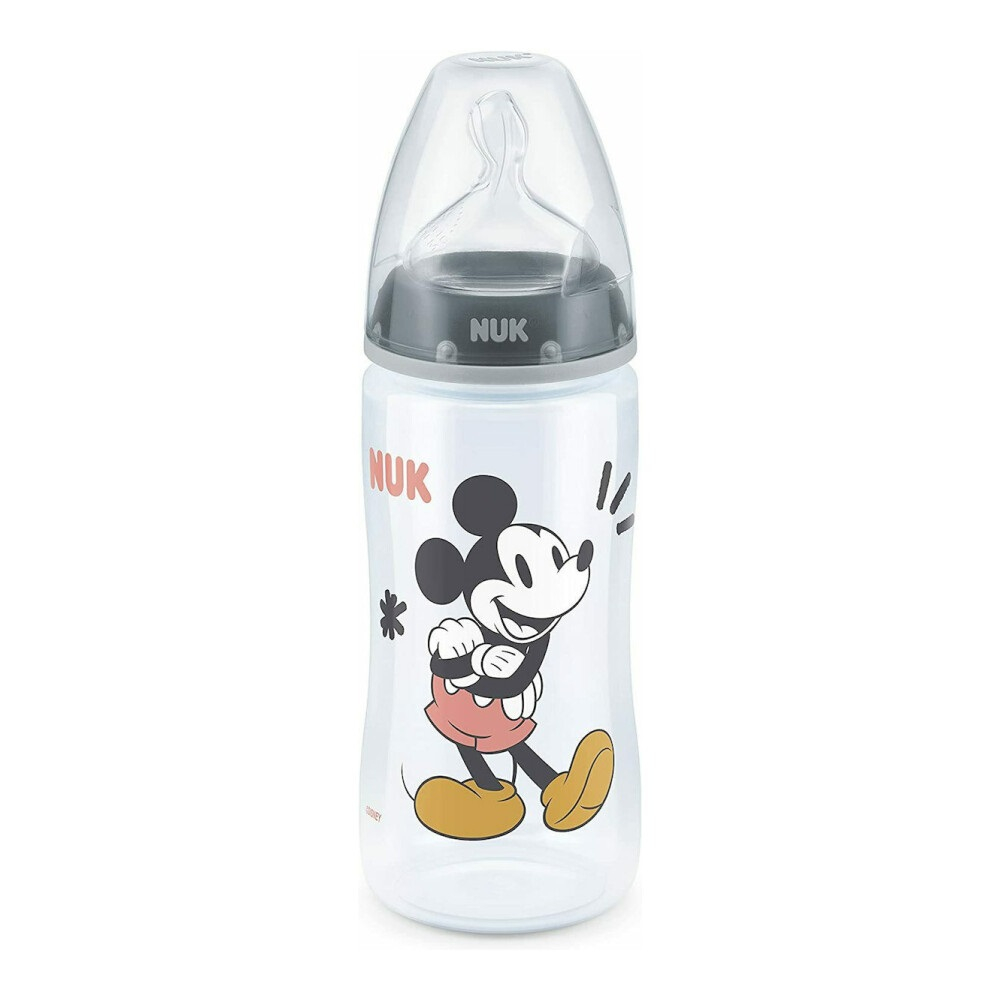Biberon Nuk First Choice PP 300 ml Control Temperatura Tetina Silicon M 6-18 luni Mickey Gri – pentru hranire sigura si relaxata.